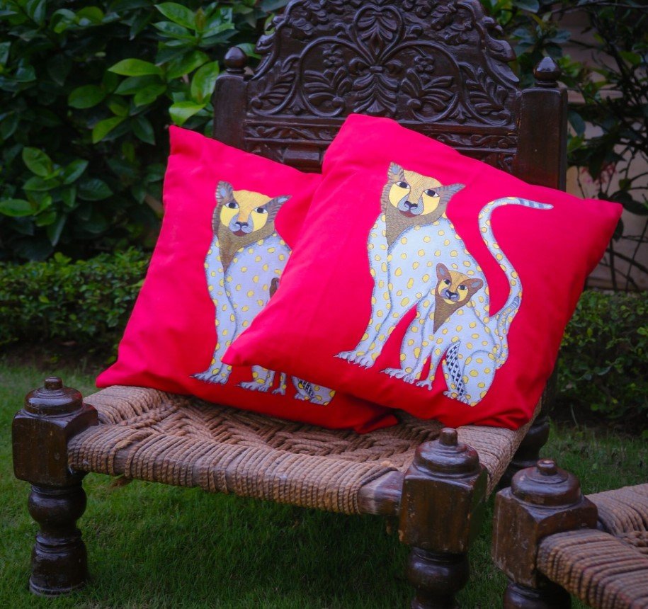 Hand Painted Red Cushion Cover Dimension11 x 11 InchProduct DetailsFront hand painted with fabric color.Reverse zip closure included.Fabric: Casemint fabric Read more Read more