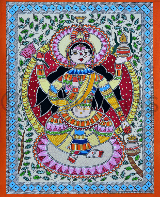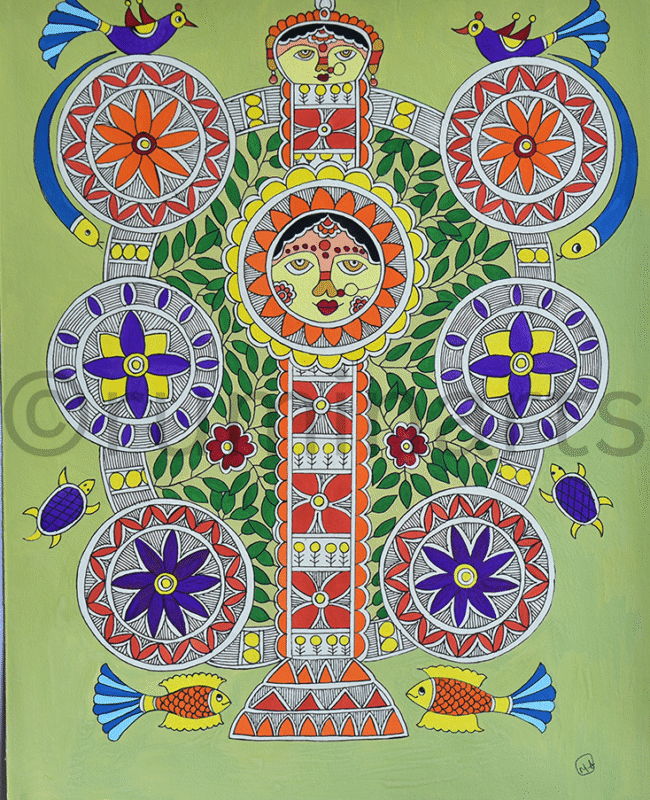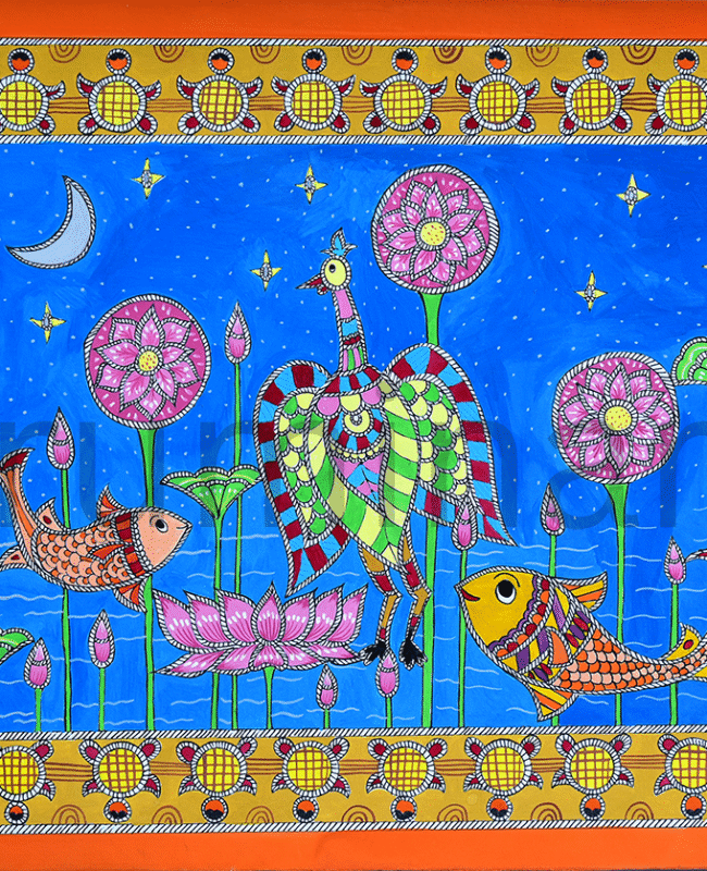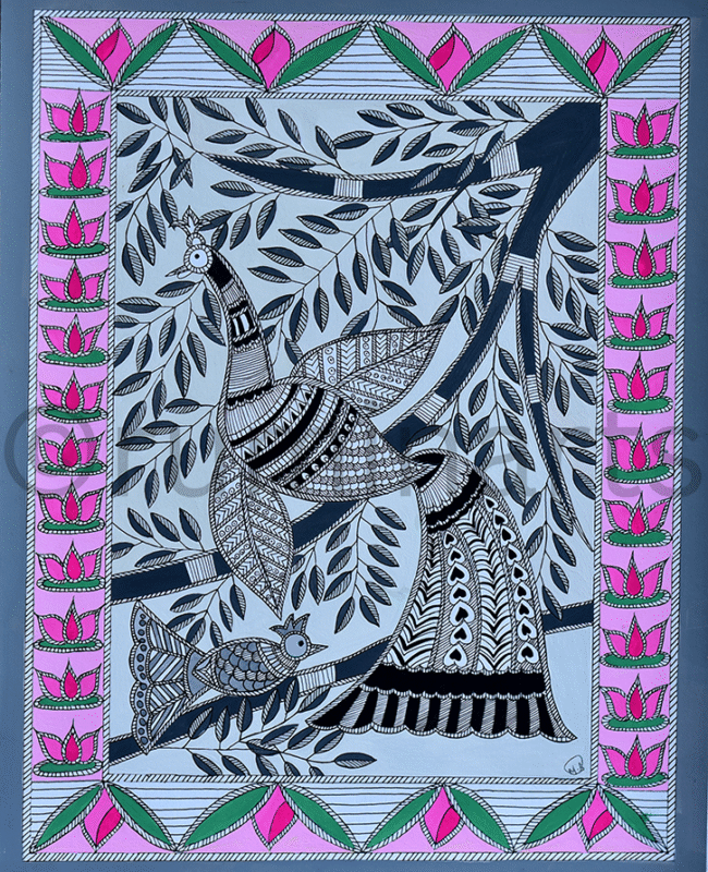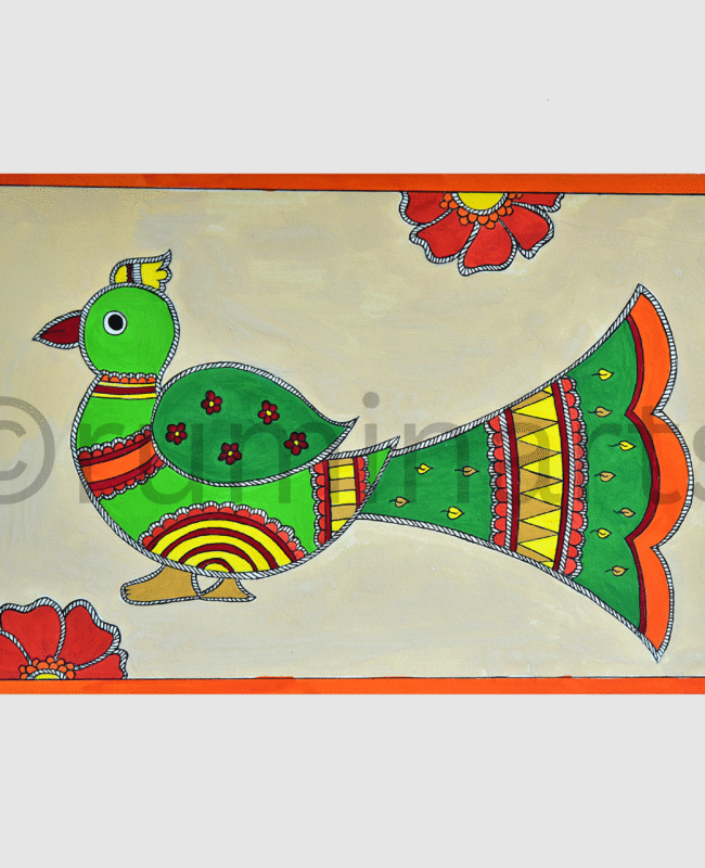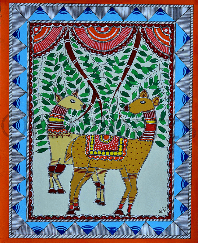 Madhubani art (also Mithila art) is a style of painting practiced in the Mithila region of India and Nepal. It is named after the Madhubani district of Bihar, India, which is where it originated. Madhubani art has distinctive styles as bharni, katchni, khobar etc. we at Rumin Arts have tried to gather different styles with latest technique of contemporary Madhubani as well.