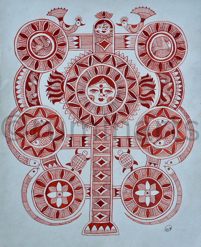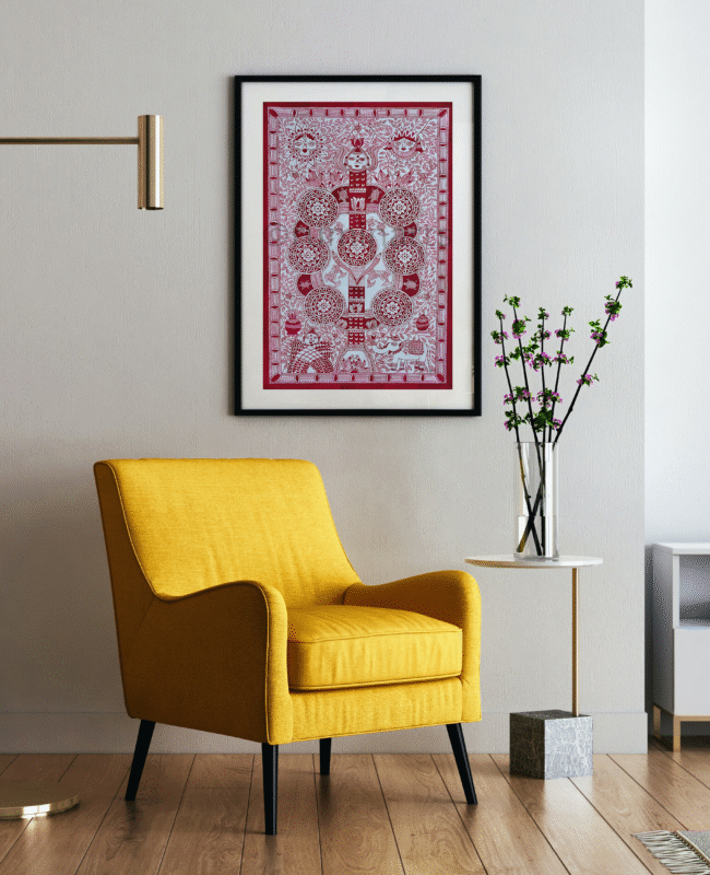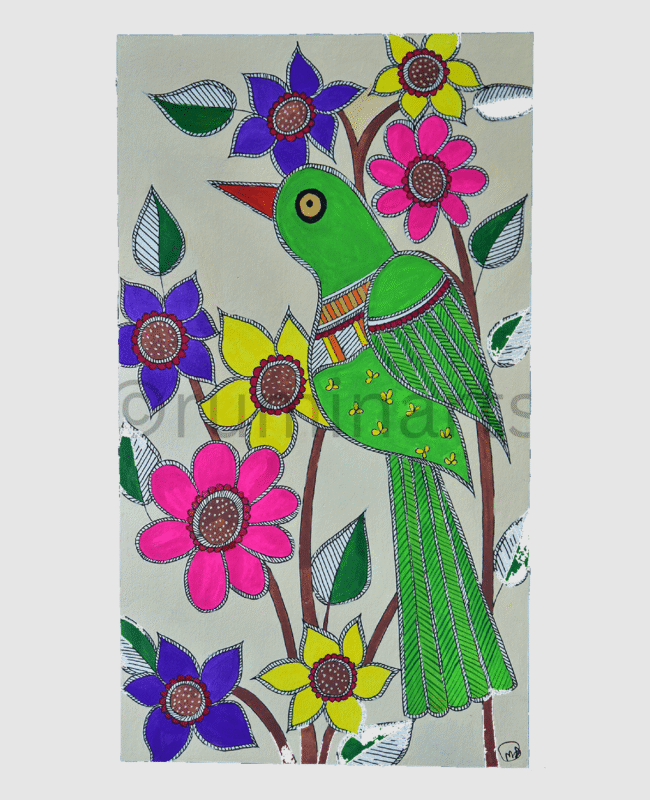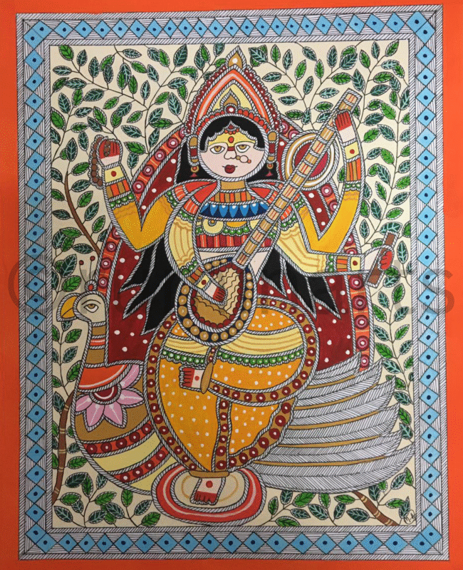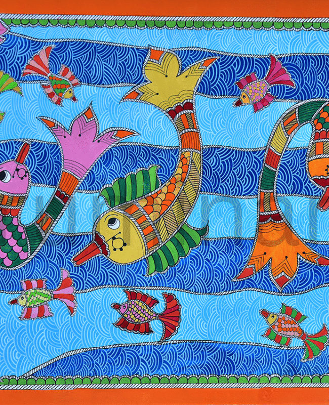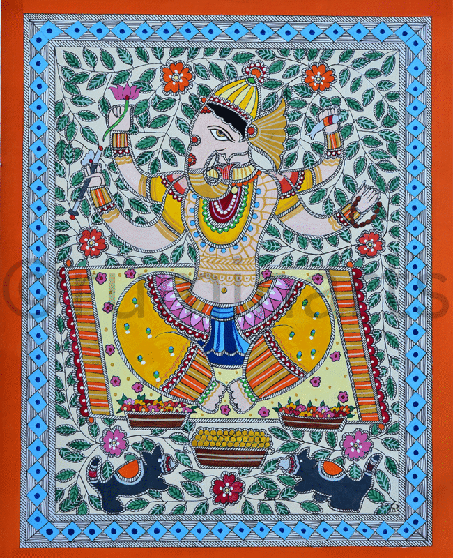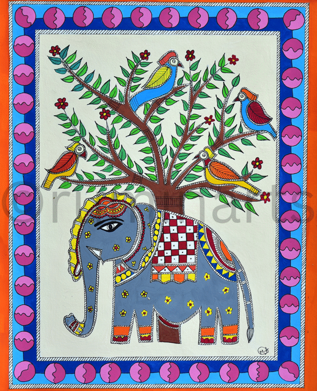 Madhubani art (also Mithila art) is a style of painting practiced in the Mithila region of India and Nepal. It is named after the Madhubani district of Bihar, India, which is where it originated. Madhubani art has distinctive styles as bharni, katchni, khobar etc. we at Rumin Arts have tried to gather different styles with latest technique of contemporary Madhubani as well.