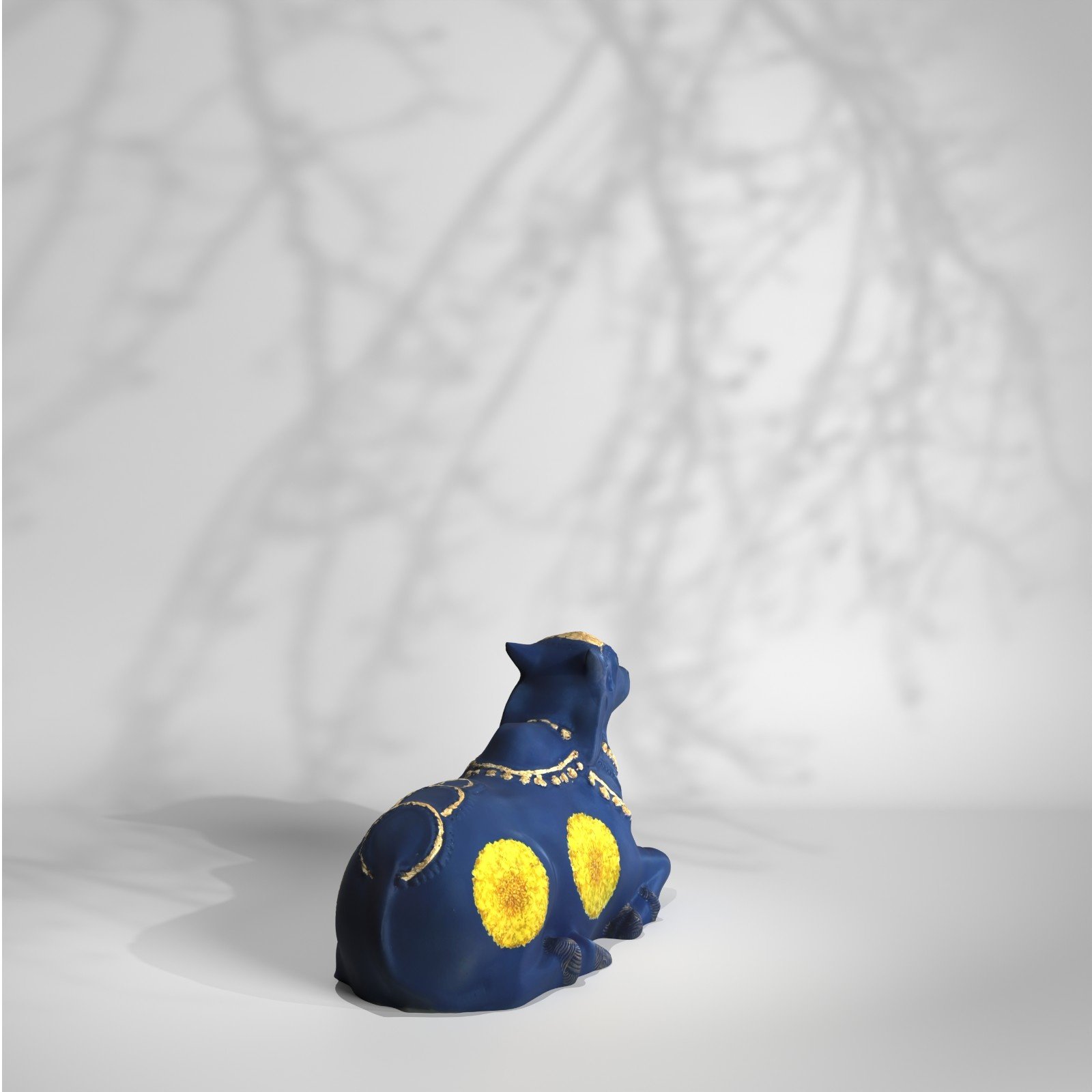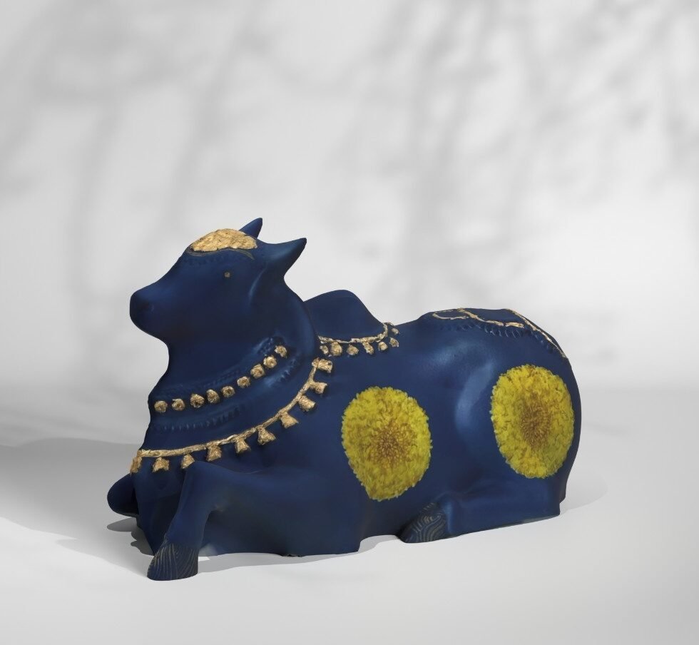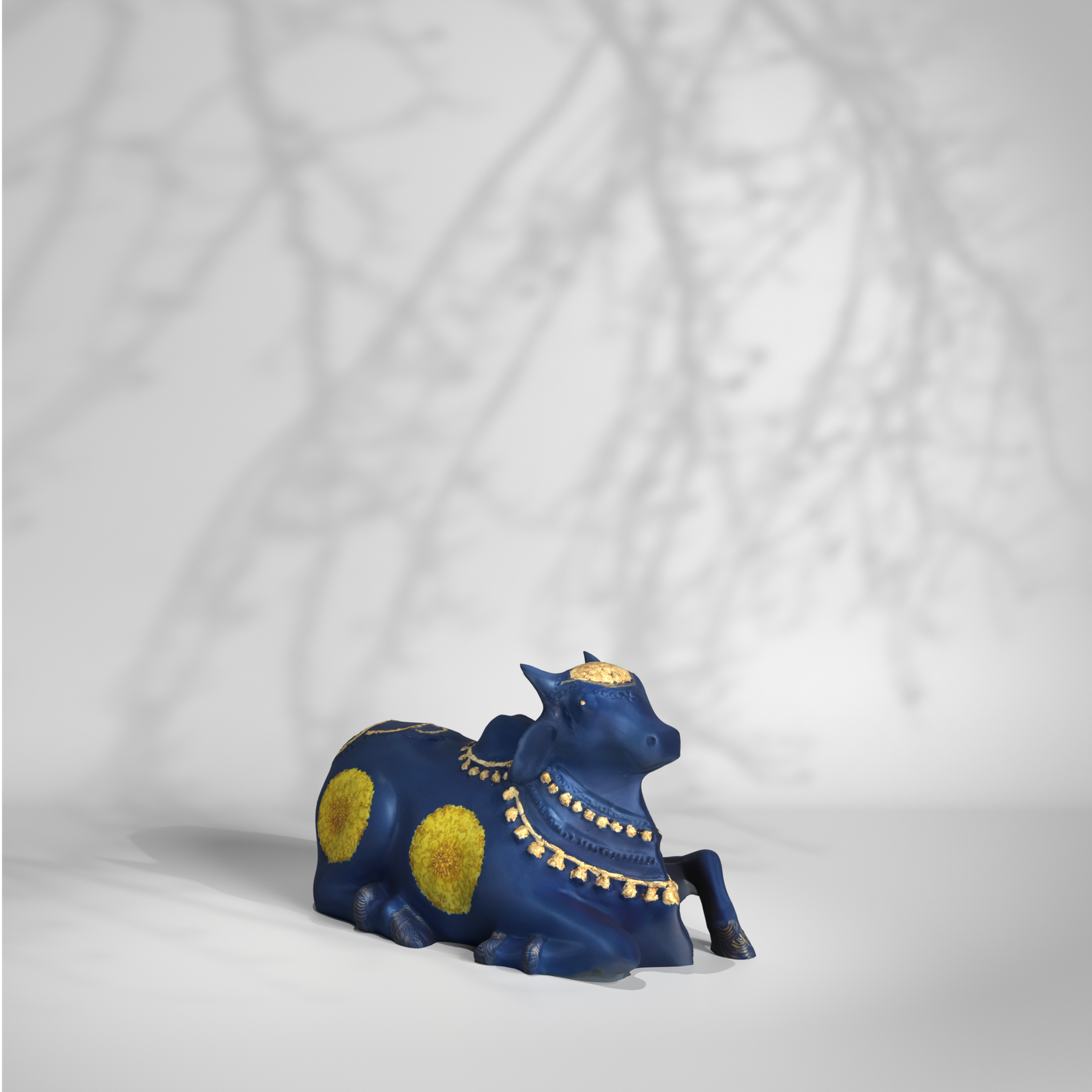 Nandi, the sacred bull in Indian mythology, symbolizes strength, devotion, and prosperity. Every inch of this sculpture is meticulously hand-painted by skilled artisans, reflecting the timeless Gond art style with bright colors, intricate dots, and traditional designs.